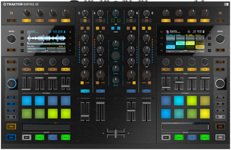Les fonctionnalités de TRAKTOR KONTROL S8 s'additionnent pour donner vie à votre créativité : votre workflow de DJing deviendra multi sensoriel. Les boutons tactiles activent le mode d'affichage Browse, les filtres, le pitch et les paramètres des effets sur les affichages, le tout sans perdre votre concentration et sans avoir besoin d'avoir votre regard rivé sur l'ordinateur portable.